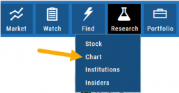 Clicking “Stock” from the Research tab will still take you to that symbol’s Dashboard which includes the Chart Tab.