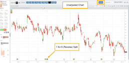 When the “UnAdj” button is clicked, the chart will display ‘before’ & ‘after’ split pricing.