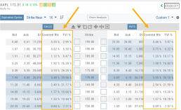 These are available on the Calls/Puts Chain and are also available as data points for Option Chain Custom Views
