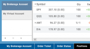 The Broker menu is located in the lower left corner of the screen and is always accessible. From here you can see your balance, positions, and orders.
