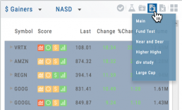 In the upper right of the Chart screen, you can select which Chart Profile to research from the drop-down box, then save or delete the profile.