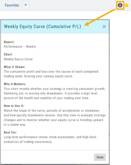With intuitive graphs and concise summary outlines, Journal Reports provide a high-level view of your account performance across multiple categories, helping you connect the dots between results, behavior, and decision-making.