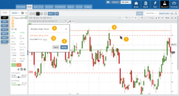- Either move the dashed line to the new position, this will temporarily show up as a solid line. OR enter the new price in the dialog box.