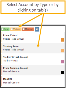 Note: Journal Tabs are automatically updated when you login to that account (Live) or simply select a Virtual or Manual Account. Orders/Trades are updated as far back as two months.