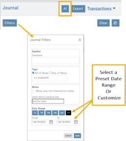 Your Journal AI Analysis will review your Trade Journal and provide insight, observations and recommendations.
