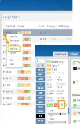 Simply click on the icon and select “Journal” for the Symbol and current price to be captured.