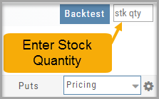 For positions that include the underlying stock, such as Covered Calls, Protective Puts & Collars, enter the stock quantity in the upper right corner of the chain window.