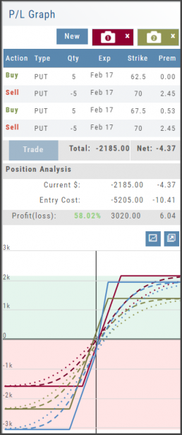 The P/L Graph will also display the stock price on the analyze date via the vertical line.