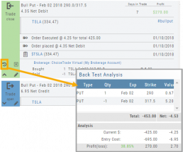 Send them to the Manual Account. While in Backtest Mode, structure your trade as usual in the Options Chain or in a Strategy Template. Then click “Save”.