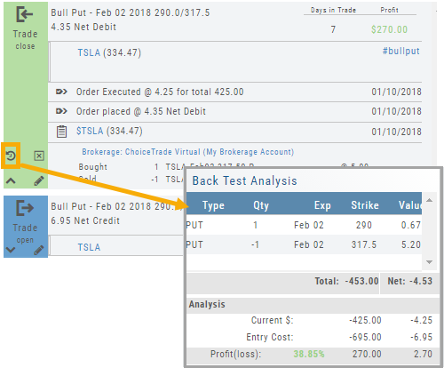 The Backtesting feature allows for an interactive way to understand the characteristic of the strategy.