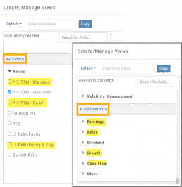 Over 30 data points were added to the Valuation and Fundamental sections for Watch List Views.