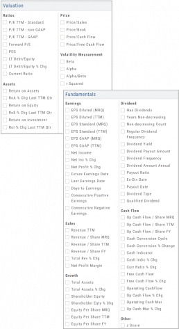 Over 30 data points have been added to the Screener Function under the Valuation and Fundamental sections.