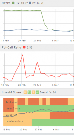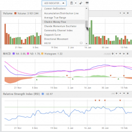 We offer select Advanced Upper and Lower Indicators that are not just derived from the price, including proprietary indicators like “Invest4Score” and “Insider Score”. They are accessible by using the “Add Indicator” drop-down box.