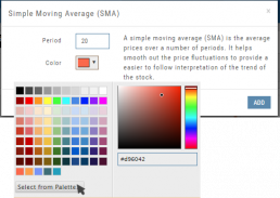 Only 2 moving averages can be selected at a time when utilizing this tool. If you wish to make a change to another moving average indicator, one must first be deselected before adding the new indicator.