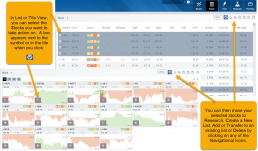 The Market & Watch Tab Icon ToolBar allows you to Create/Modify/Manage your Lists.