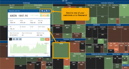 The Heat Maps on the Market page offer the ability to drill down to the stock level. You are able to do this with both the Map and Spectrum views. Clicking on a stock will also show the quote detail. From this you can also send to a list or research.
